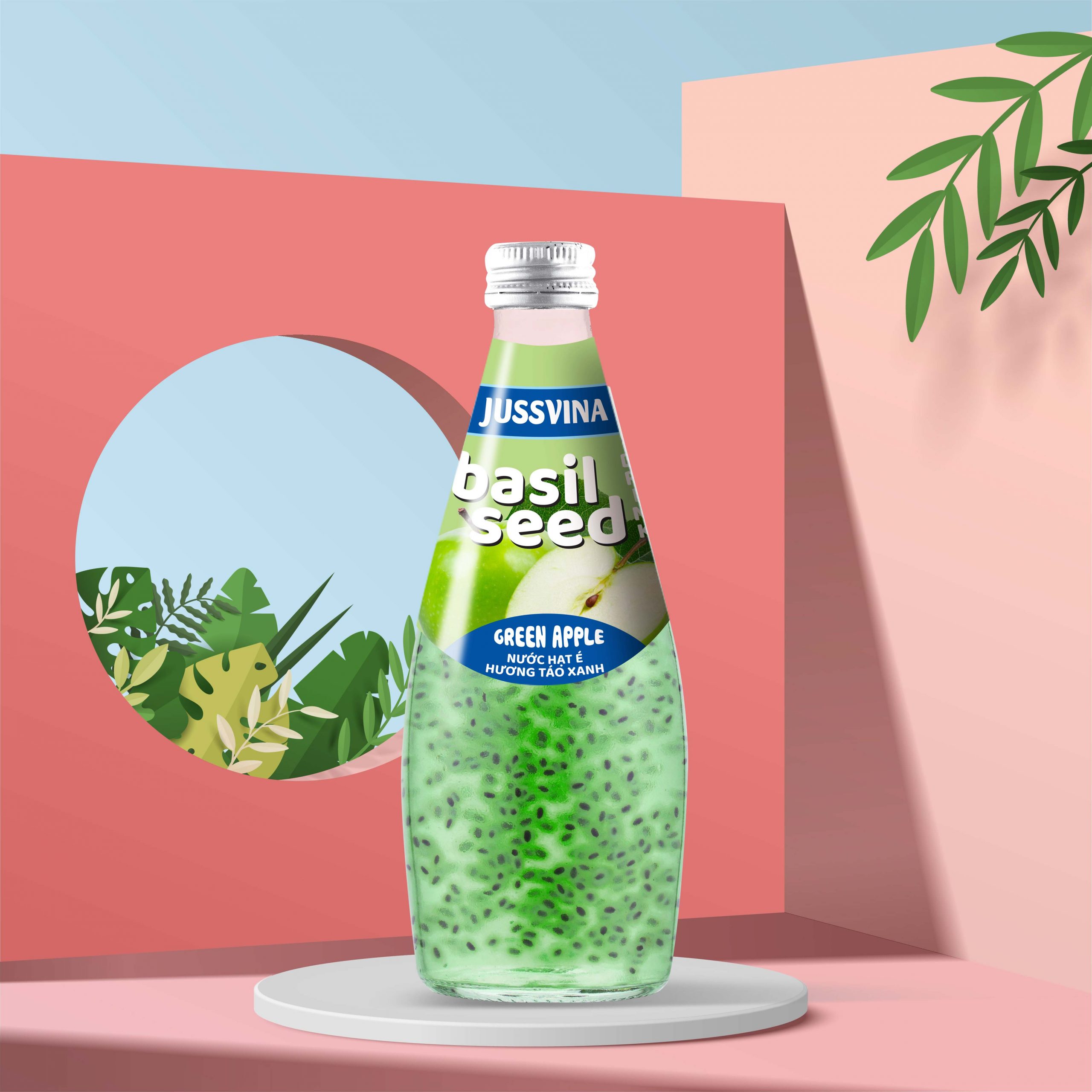 jussvina apple basil seed drink 290ml glass bottle