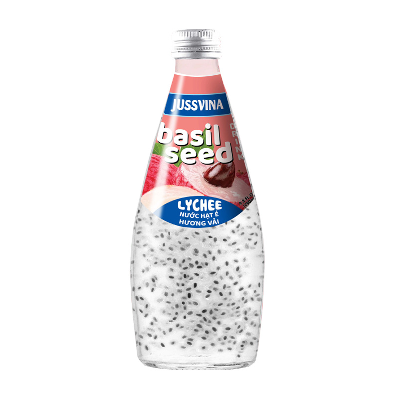 jussvina lychee basil seed drink 290ml glass bottle